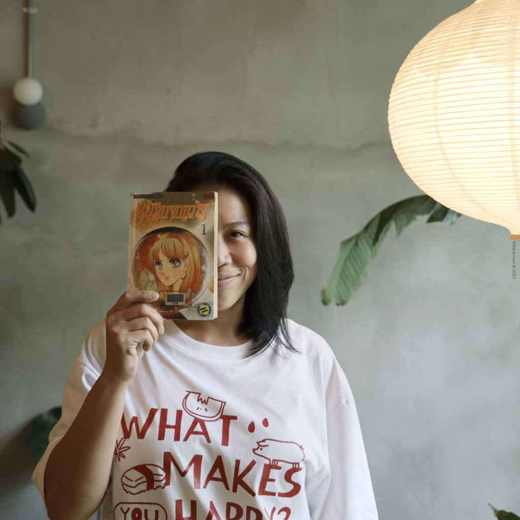 อย่างช่วงสอบ จะบอกตัวเองเลยว่า ถ้าอ่านโคทาโร่ จบ 60 เล่ม (ข้าชื่อโคทาโร่! โดย ทัชซึยะ ฮิรุตะ) ฉันจะรีบไปอ่านหนังสือเรียนทันที แล้วก็จะอ่านไปจนถึงตี 2-3 ต้องอ่านการ์ตูนเสร็จก่อน จะได้มีสมาธิ ตัดกิเลสให้หมดก่อน” เธอหัวเราะภูมิใจเป็นรอบที่สอง