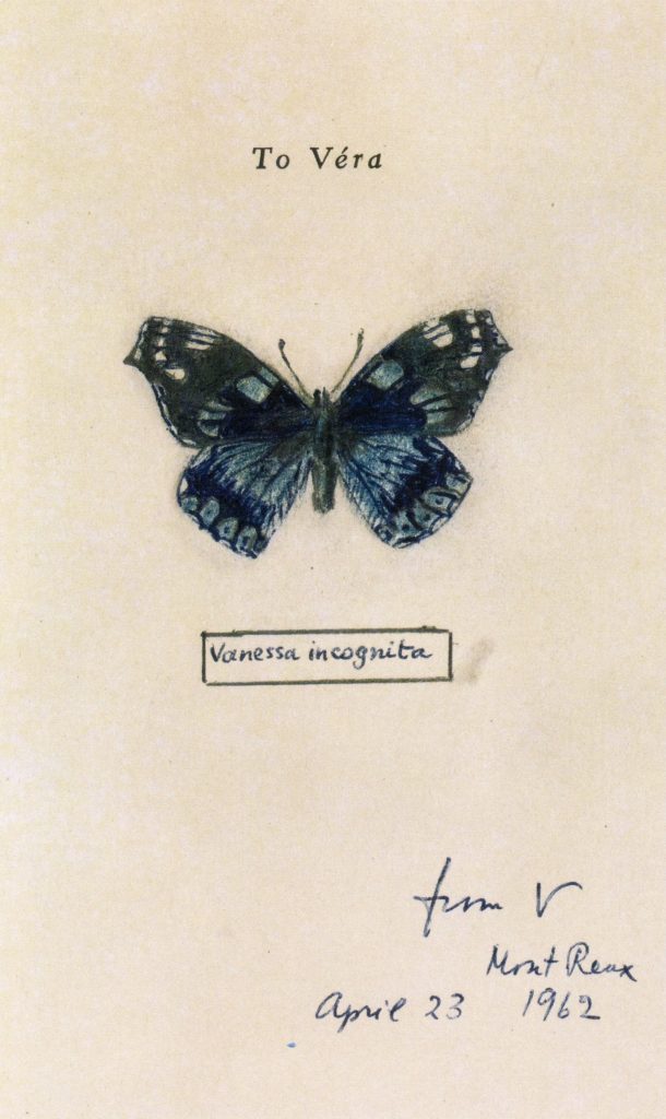 นาโบคอฟชอบวาดรูปผีเสื้อ (ที่ถูกต้องตามหลักทางวิทยาศาสตร์) ลงบนหนังสือที่มอบเป็นของขวัญให้ใครต่อใคร และหนังสือเล่มแรกที่เค้าวาดรูปผีเสื้อให้ คือหนังสือที่มอบให้กับเวร่า (Véra) ภรรยาสุดที่รักของเขา และในอีกหลาย ๆ เล่ม ถ้าอยากหาดูภาพวาดแบบรวมผีเสื้อของนาโบคอฟ ก็สามารถตามไปอ่านได้ในหนังสือชื่อ Véra’s butterflies: First Editions by Vladimir Nabokov Inscribed to His Wife (1999) ซึ่งยังพอหาดูออนไลน์ได้ หรือถ้าสนใจก็สั่งซื้อในเว็บขายหนังสือได้เช่นกัน